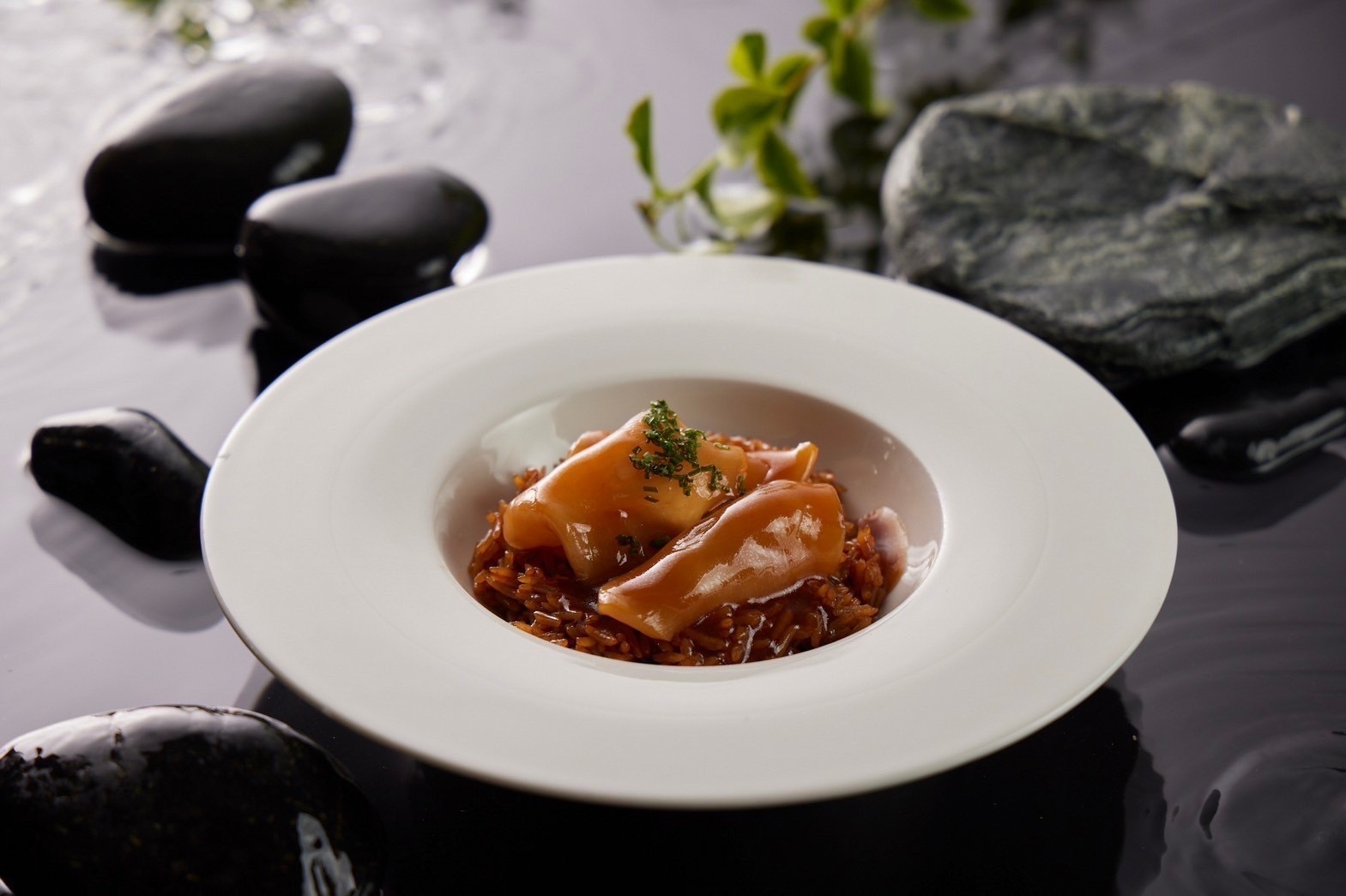 這次謝錦松的菜單超級精彩,沒有飯的潮汕名菜「豆醬魚飯」、沒有雞肉的功夫老菜「金錢雞」將在台灣重現江湖;應該沒有幾個人吃過的「珍珠肉」,以珍珠蚌肉曬乾後入菜,也是珍貴稀有; 另外「玻璃脆皮乳鴿」、「溏心吉品乾鮑」、「脆皮百花遼參」、和「油浸東星斑件」也是全面升級版;壓軸的「鮑汁花膠燜飯」光是鮑汁就用了鮑魚、金華火腿、鵝掌、豬皮、豬骨,花了十多個小時熬製而成,拿這頂級鮑汁來煨花膠魚肚,怎麼可能不美味呢?