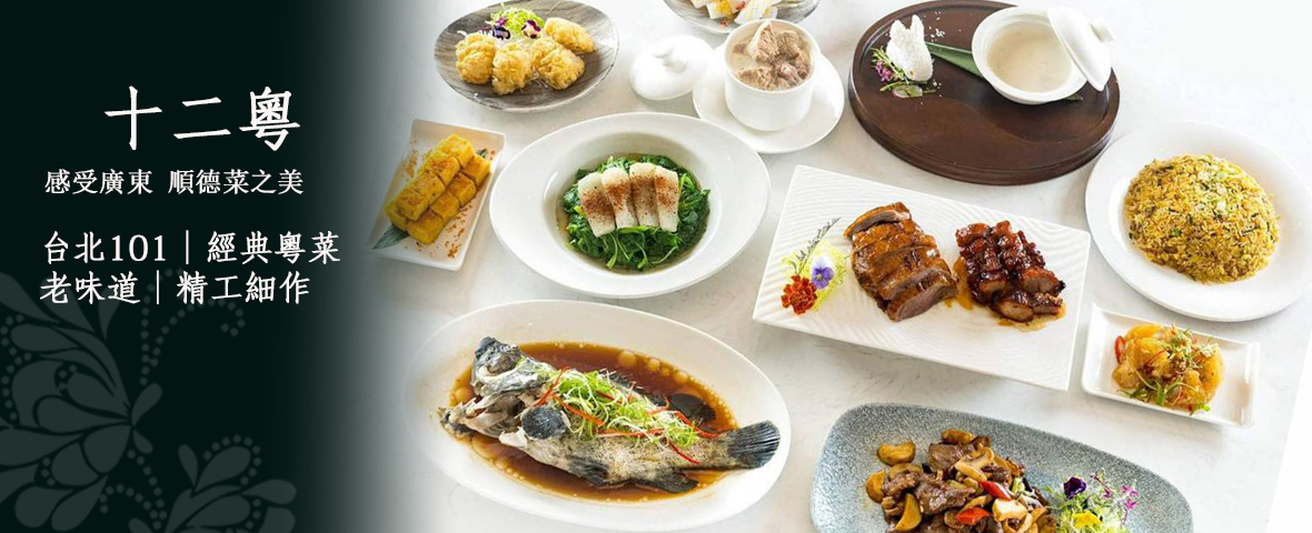 位處台北101購物中心的粵菜食府十二粵,在東方古韻的格調上融入時尚氣息,以卓越的廚藝,糅合一年四季中當季新鮮食材,將傳統粵菜的精粹細緻展現,讓您在四季都能品嚐到最佳的時節風味。