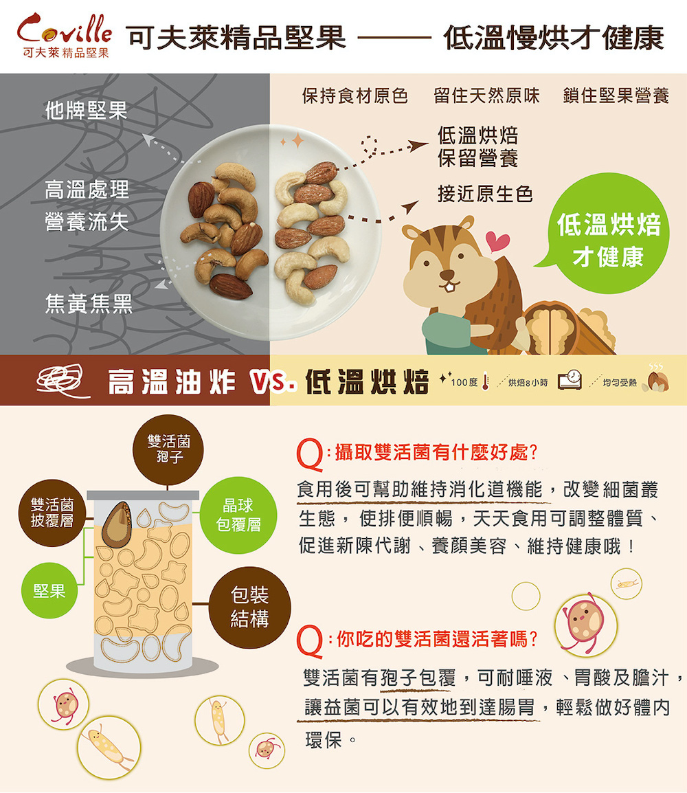 內容物名稱(成分):腰果、核桃、杏仁、胡桃、開心果、雙活菌(燕麥粉、納豆菌發酵物、芽孢乳酸菌發酵物、麥芽糊精)