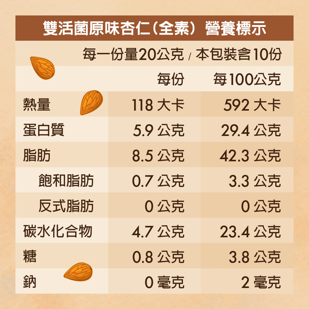商品品名:雙活菌慢焙杏仁