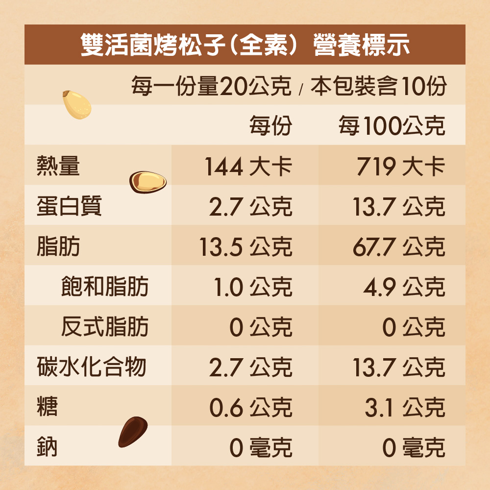商品品名:雙活菌烤松子