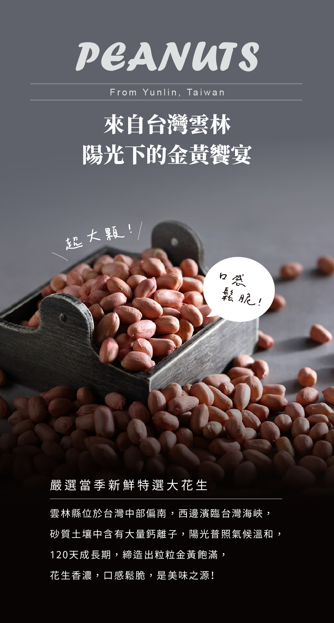 嚴選台灣雲林北港大花生,顆粒大而香氣濃。