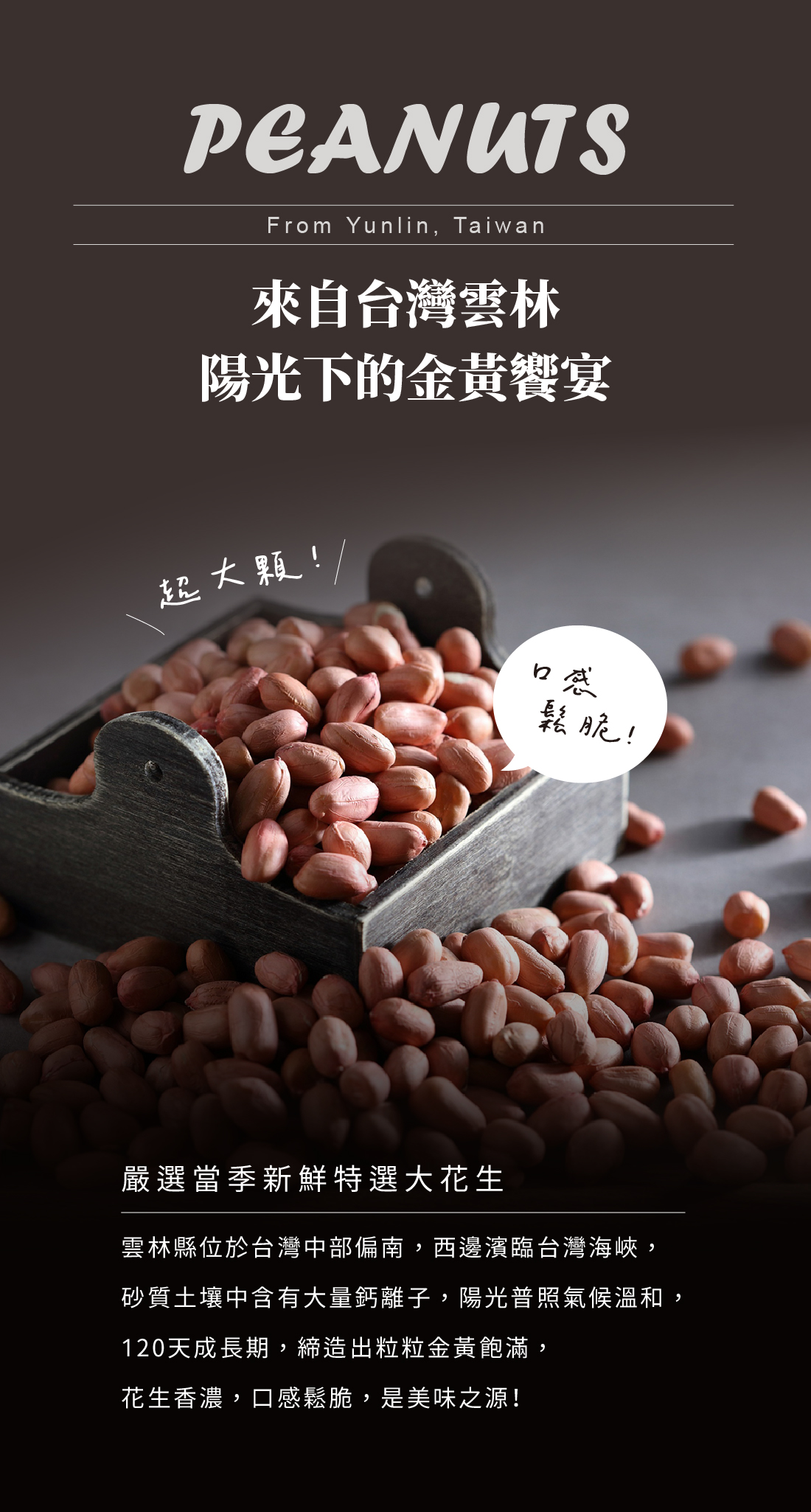 嚴選台灣雲林大花生並搭配汁水飽滿,甜中帶辛的蔥,讓您每一口都吃得到花生與青蔥絕妙的好滋味。