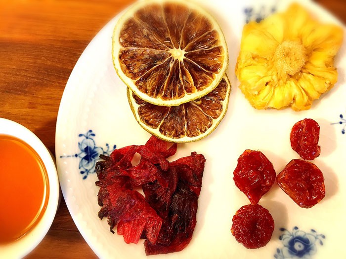內含:台灣芭樂乾、香甜蘋果乾、特級水蜜桃乾、聖女番茄乾、天然檸檬乾片、金鑽鳳梨花果乾、台東洛神花乾、紅心芭樂乾、玉井情人果乾、天然超大葡萄乾 各一包