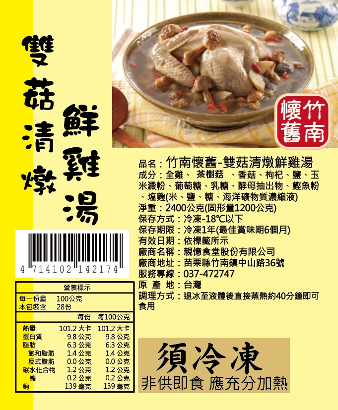 【竹南懷舊】雙菇清燉鮮雞湯 2400g