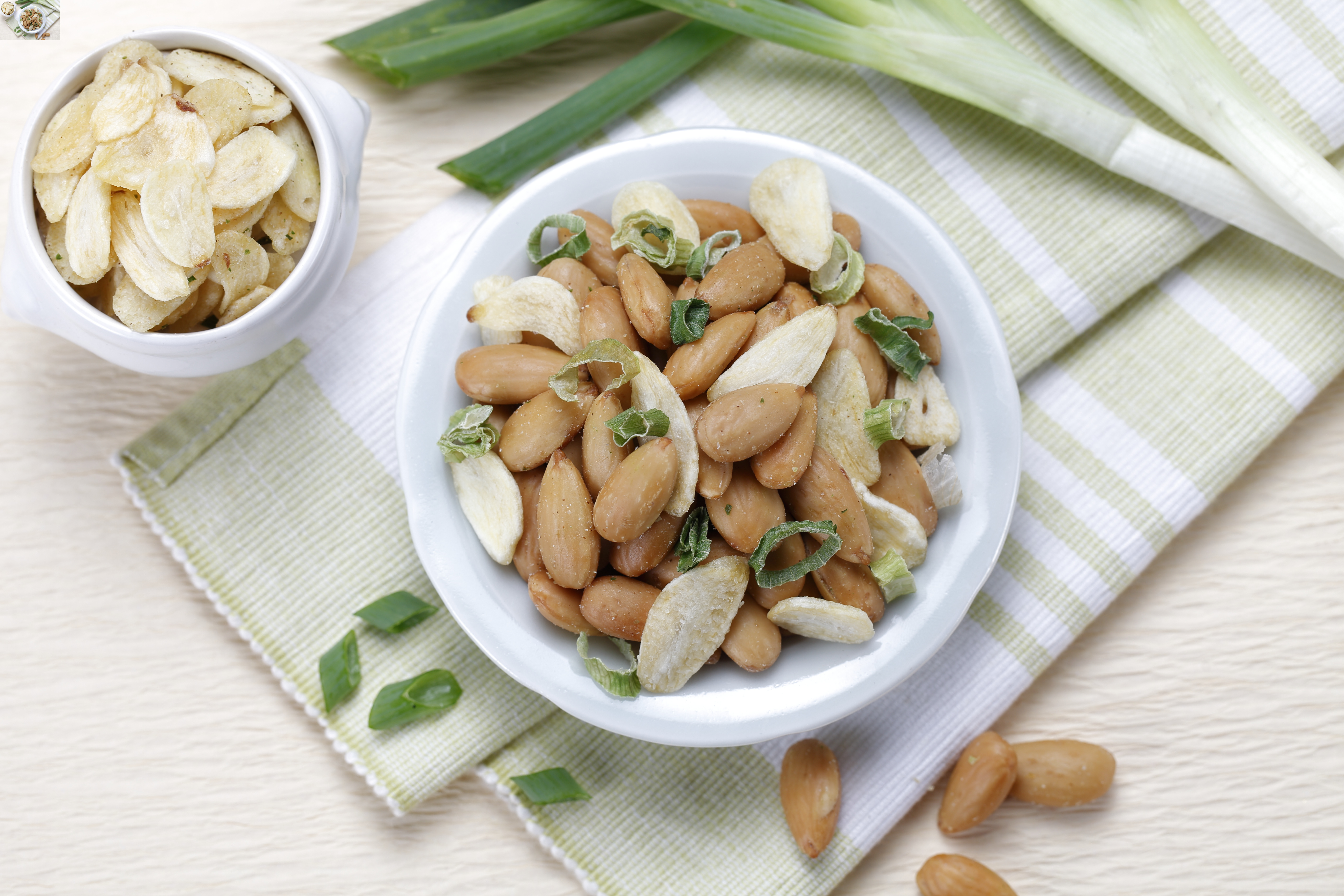 嚴選優質杏仁果配上青蔥、蒜片,口感豐富、解饞小零食 。