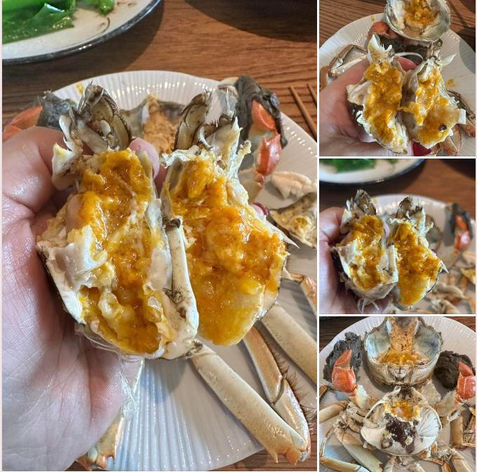 還好,我自己連開三隻都是黃滿膏肥 (照片看得出來是不同隻吧),朋友也是吃得大快朵頤,三人10隻完食,大大過癮。