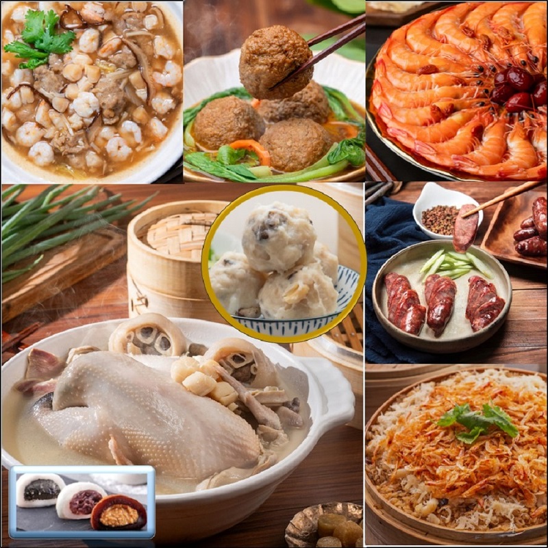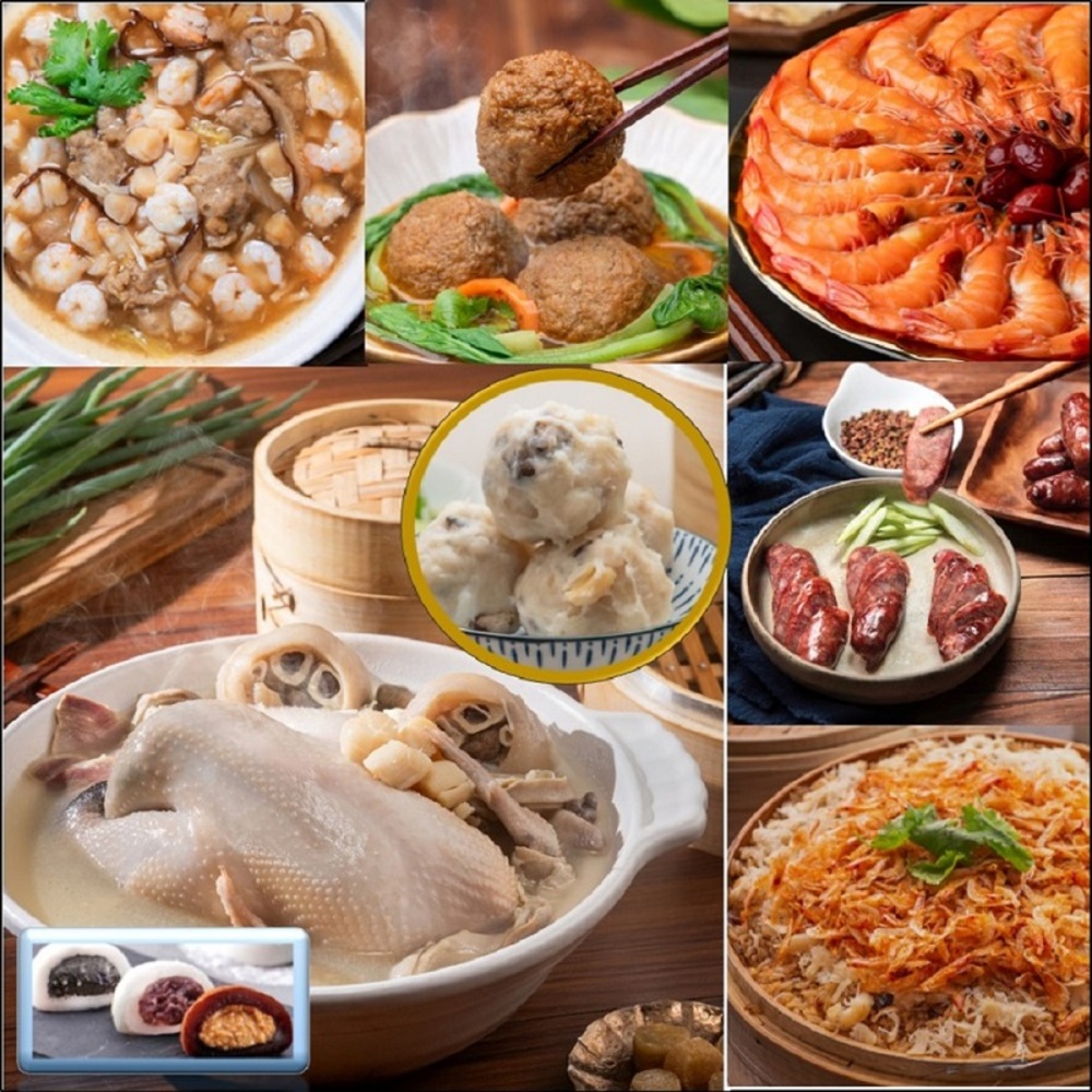 手工霸王干貝丸、福園古早味台式香腸、家鄉獅子頭、冰雪麻糬禮盒