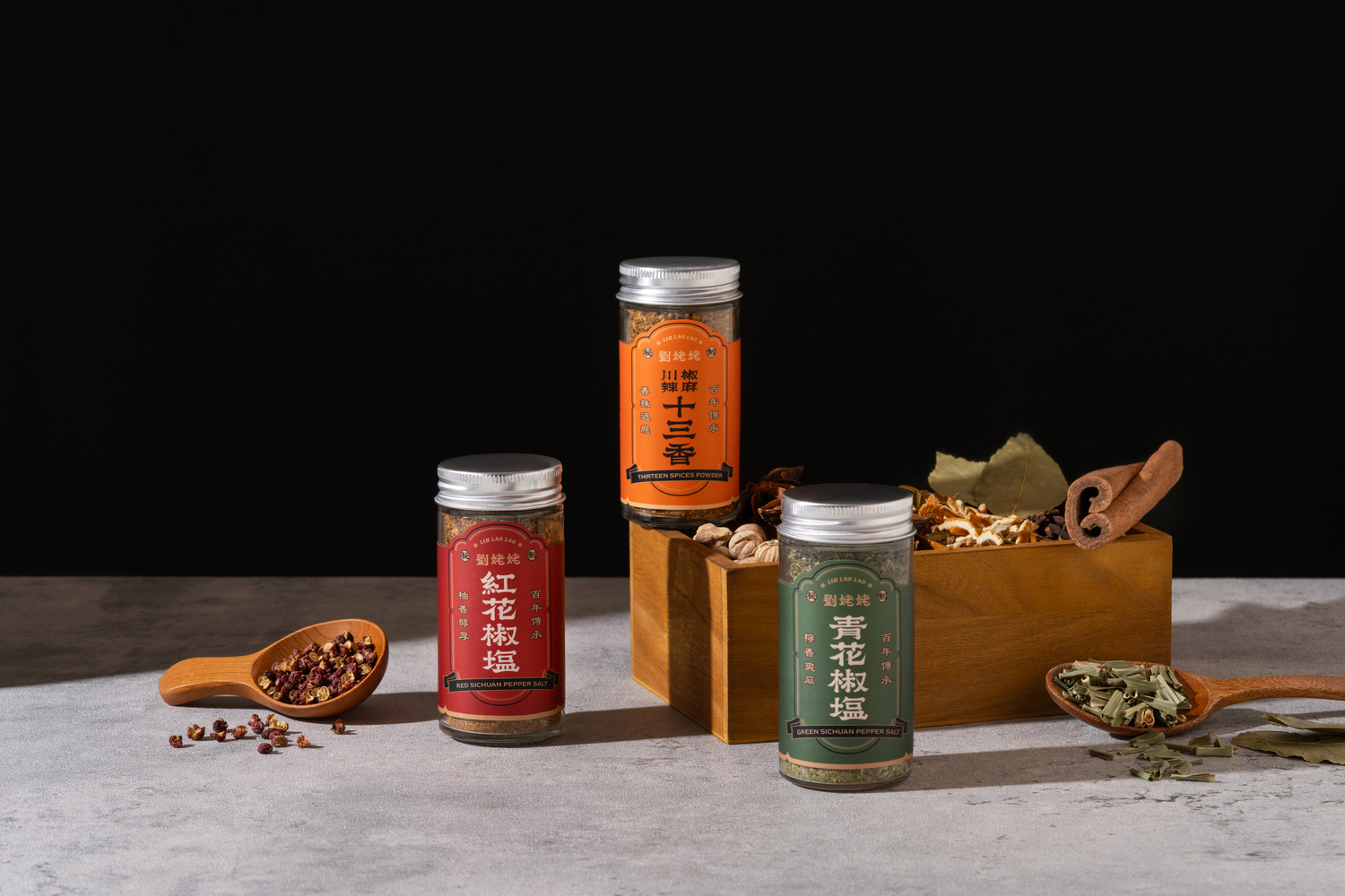 以頂級梅花椒、青花椒及辣椒為基底,佐以獨家配比精選十三種辛香料,經慢火煎焙研磨成粉,繁馥香氣堆疊出多重味覺層次,賦予各式料理精緻風味。
