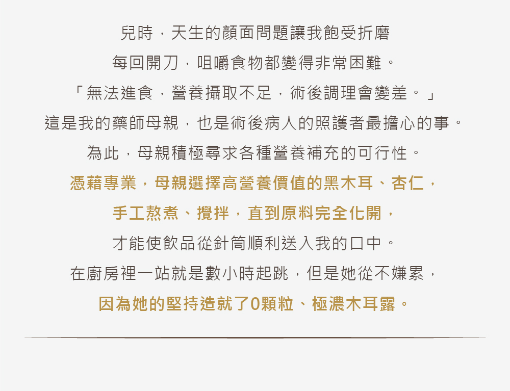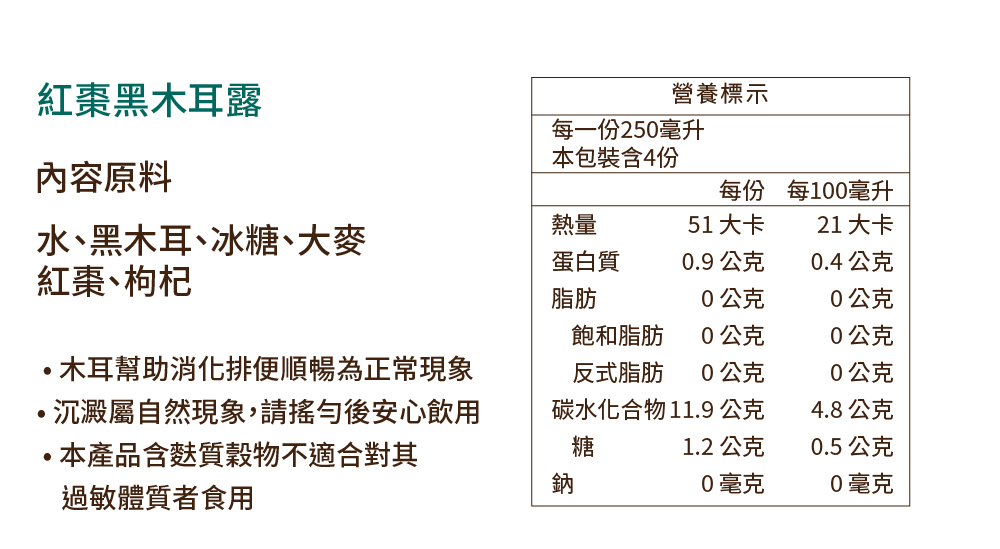 🎖️麥子味清香,中醫師調配最佳比例,不燥熱,溫補養生首選! 🎖️細緻零顆粒木耳、好吸收、膠質高 🎖️非常時期喝護全家的健康 🎖️補充攝取膳食纖維,幫助消化順暢 🎖️飲食控制最佳神隊友 🎖️奶瓶幼幼兒、牙口不好長輩皆能安心飲用 ■下單後約1-2個工作天出貨