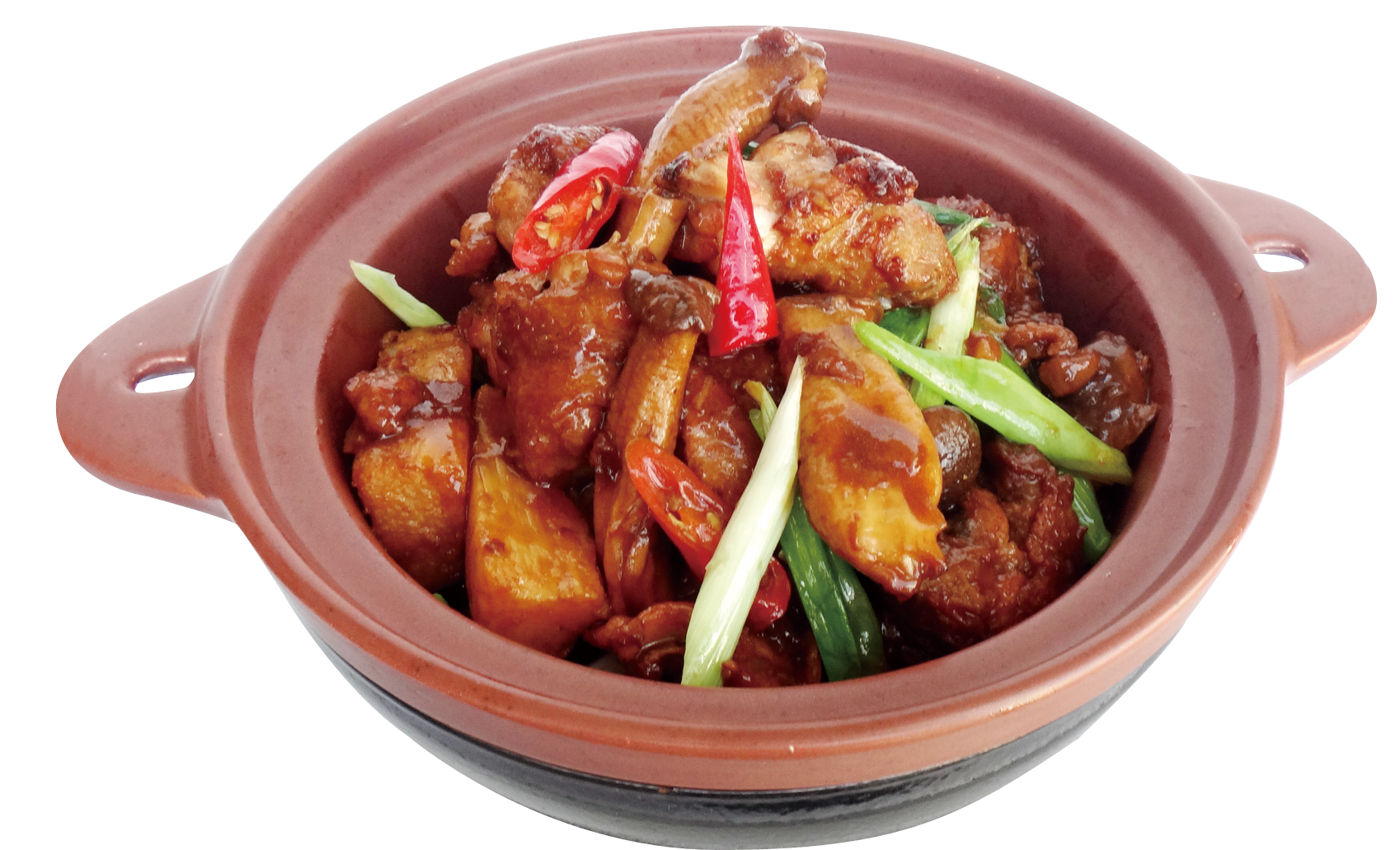 嚴選上等雞肉,以獨門醬料醃製入味,搭配薑片爆香快炒鎖住肉汁,再以陳年花雕酒與純釀醬油細火煨煮,融入杏鮑菇增添層次。