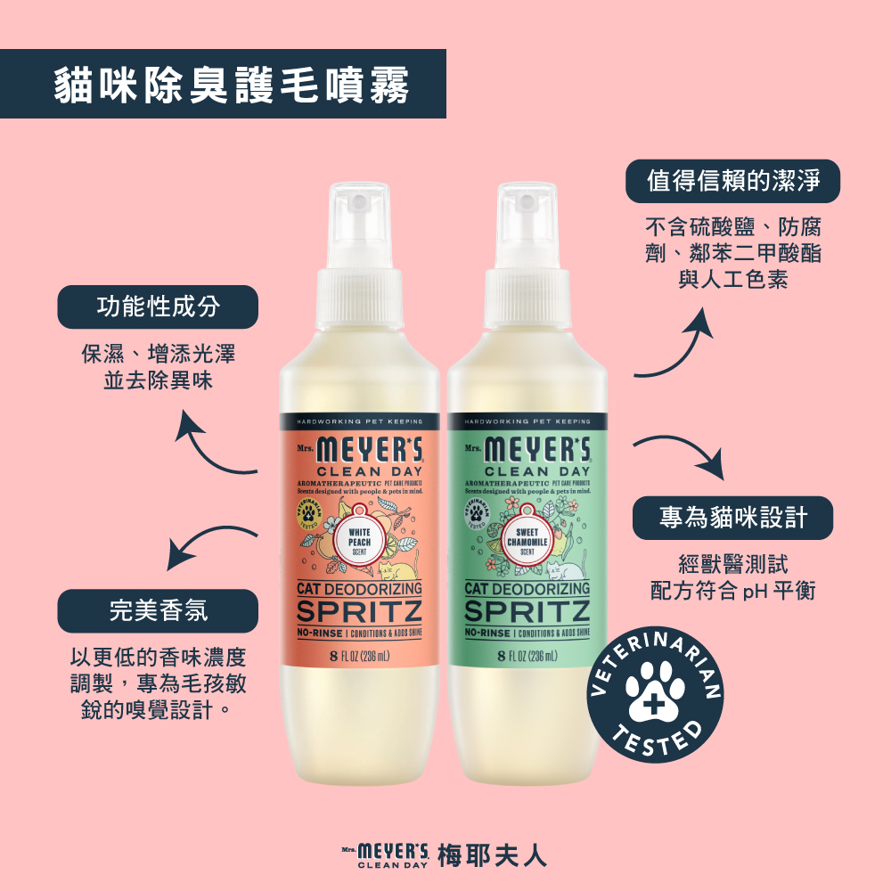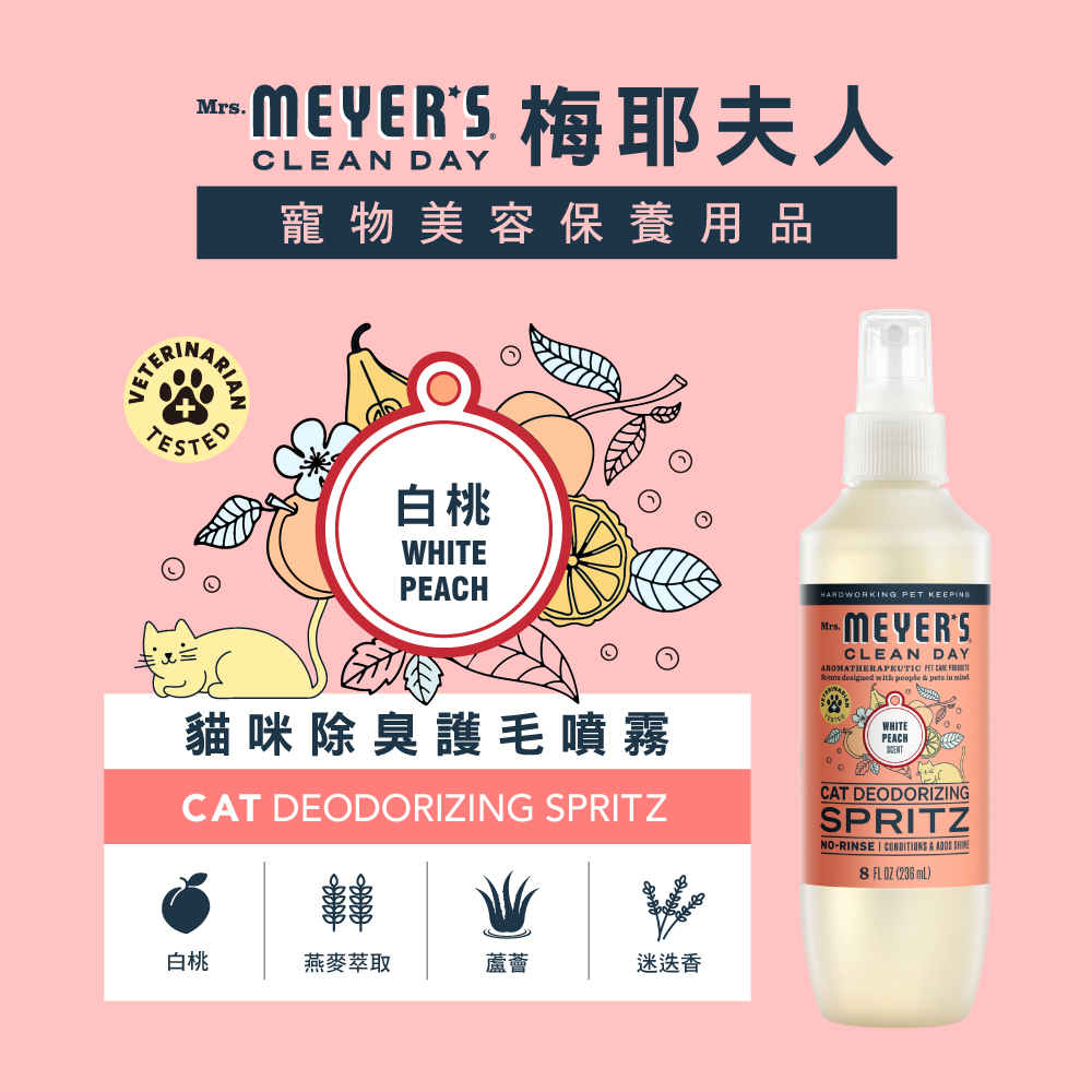 - 英文品名:Mrs. Meyer’s Cat Deodorizing Spritz White Peach