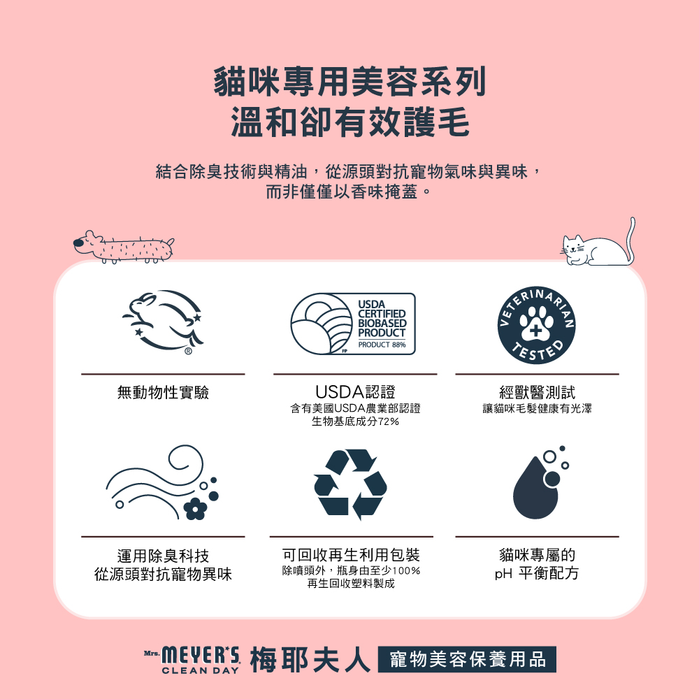 - 中文品名:梅耶夫人 貓咪除臭護毛噴霧 白桃