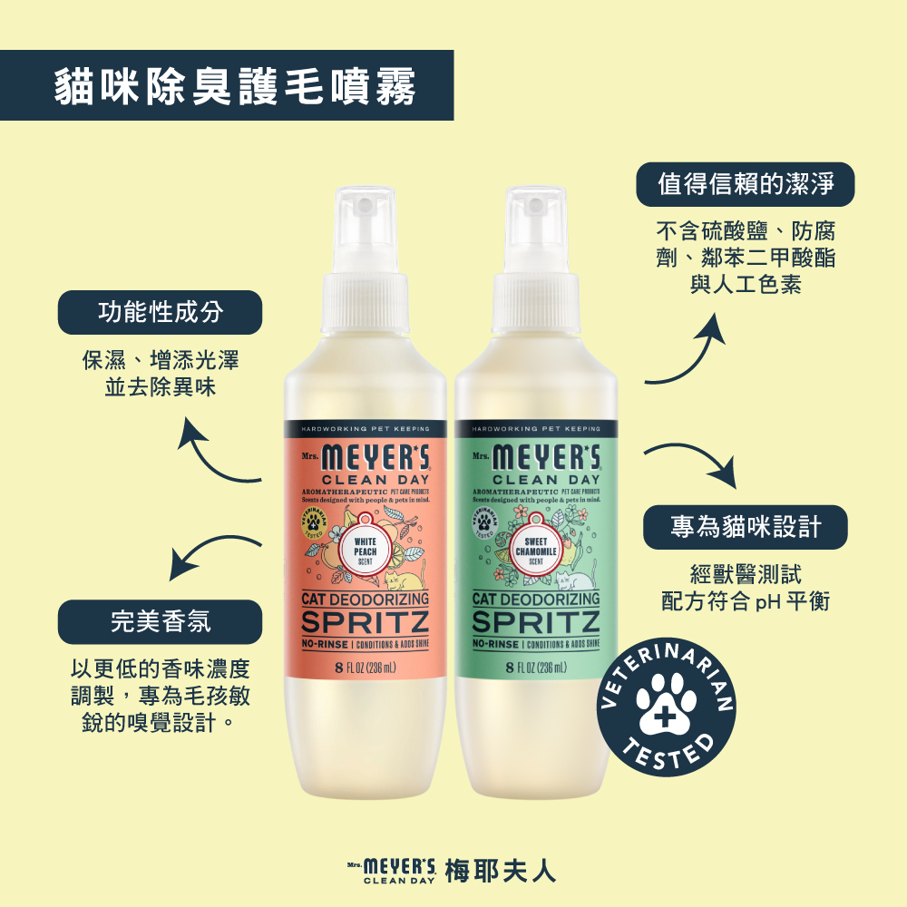 - 英文品名:Mrs. Meyer’s Cat Deodorizing Spritz Sweet Chamomile