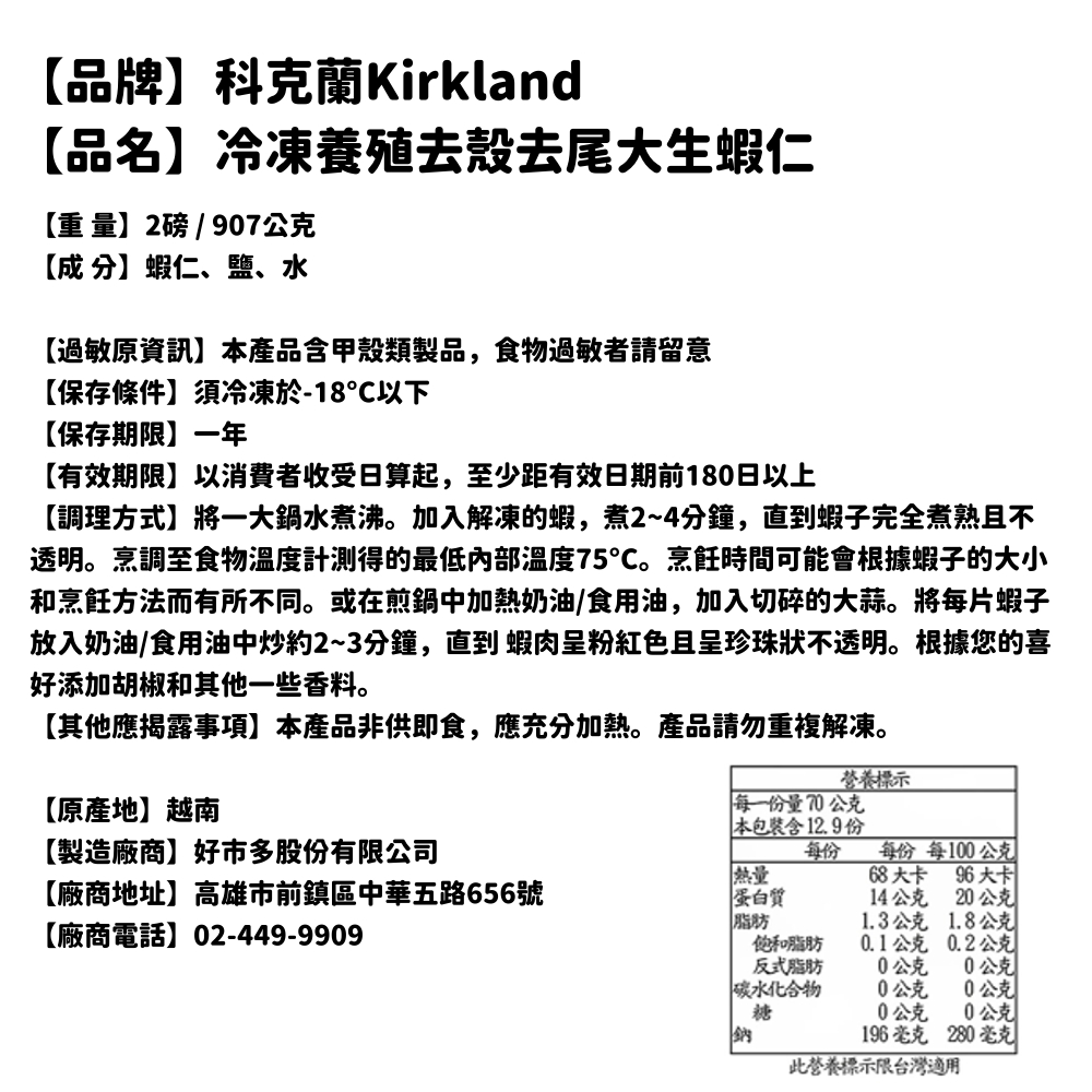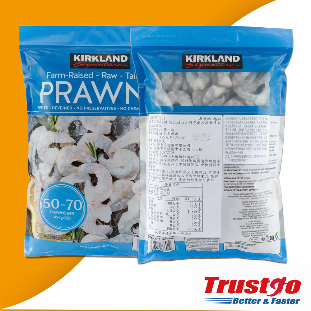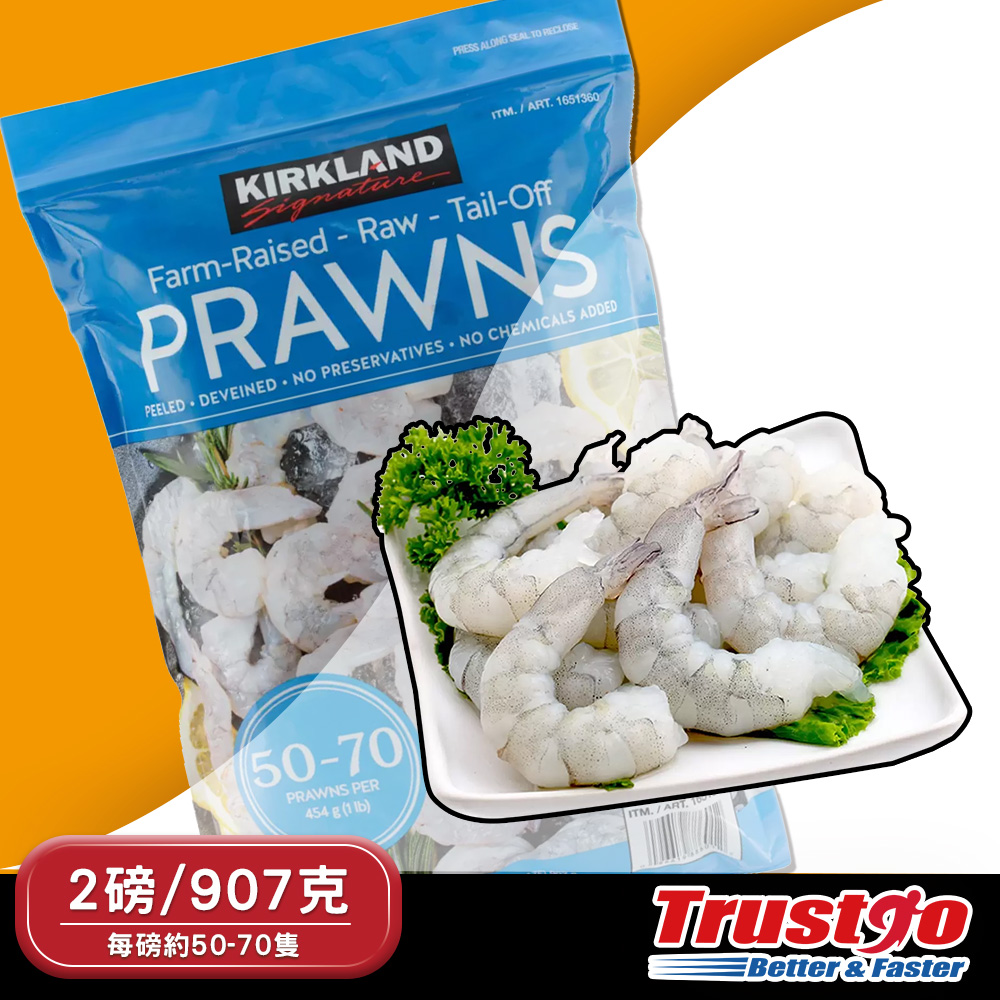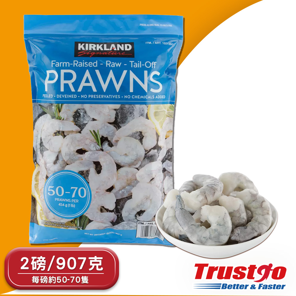 【美式賣場】Kirkland Signature冷凍養殖去尾大生蝦仁(2磅907克/包)