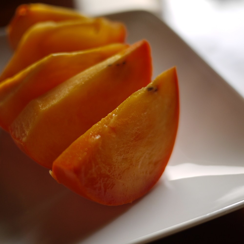 從視覺、嗅覺、味覺都滿足的橙紅色甜柿。
