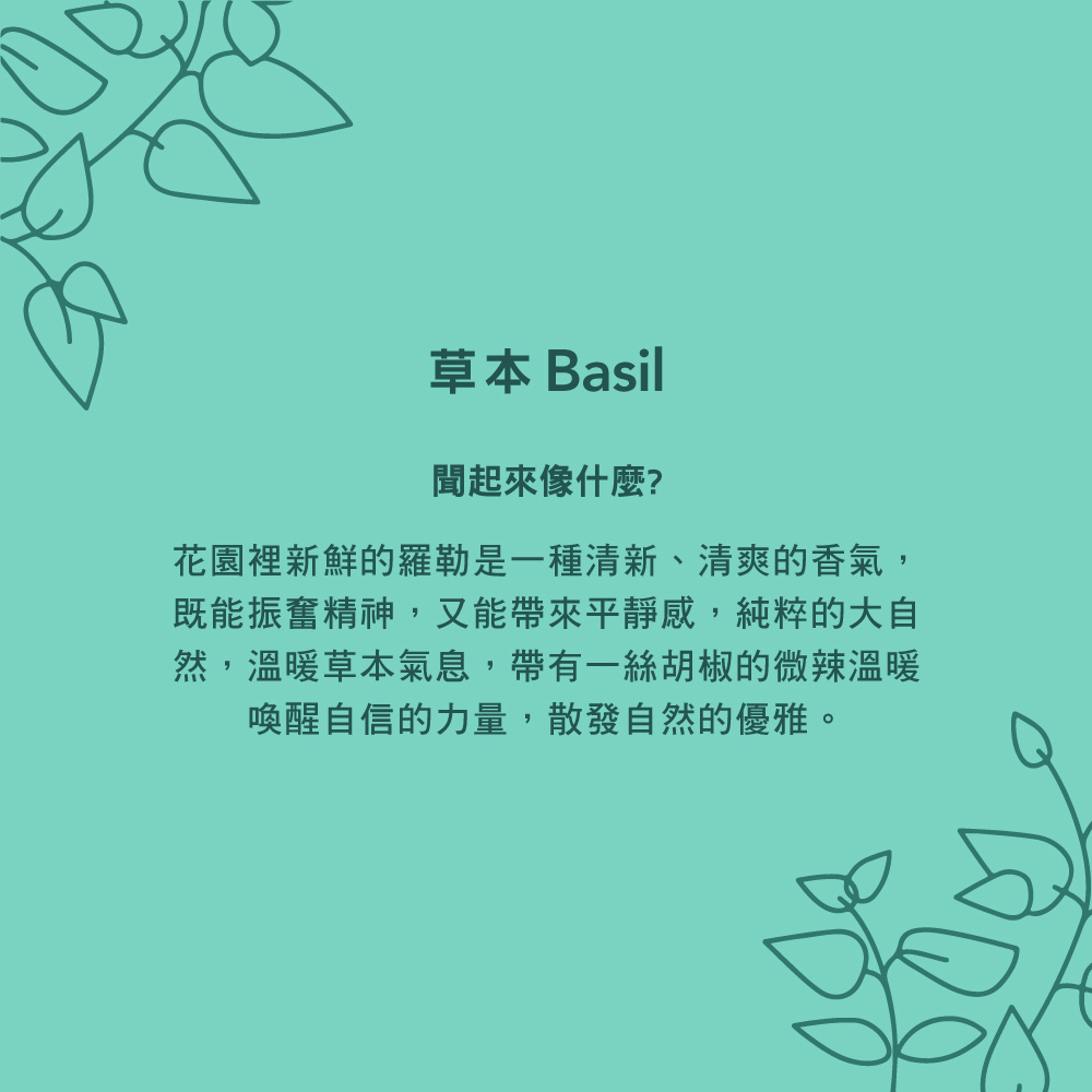 花園裡新鮮的草本是一種清新、清爽的香氣,既能振奮精神,又能帶來平靜感,純粹的大自然,溫暖草本氣息,帶有一絲胡椒的微辣溫暖,喚醒自信的力量,散發自然的優雅。