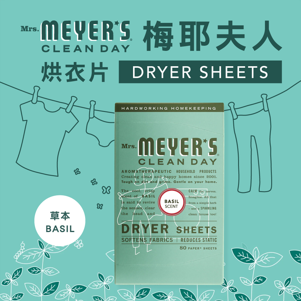 - 英文品名:Mrs. Meyer’s Dryer Sheets Basil