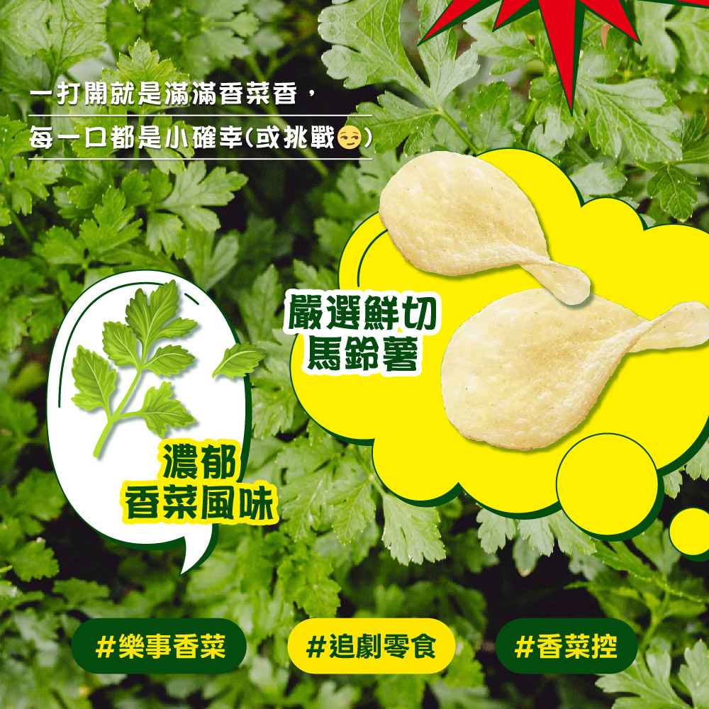 嚴選鮮切洋芋片搭配濃郁香菜 一打開滿滿香菜味