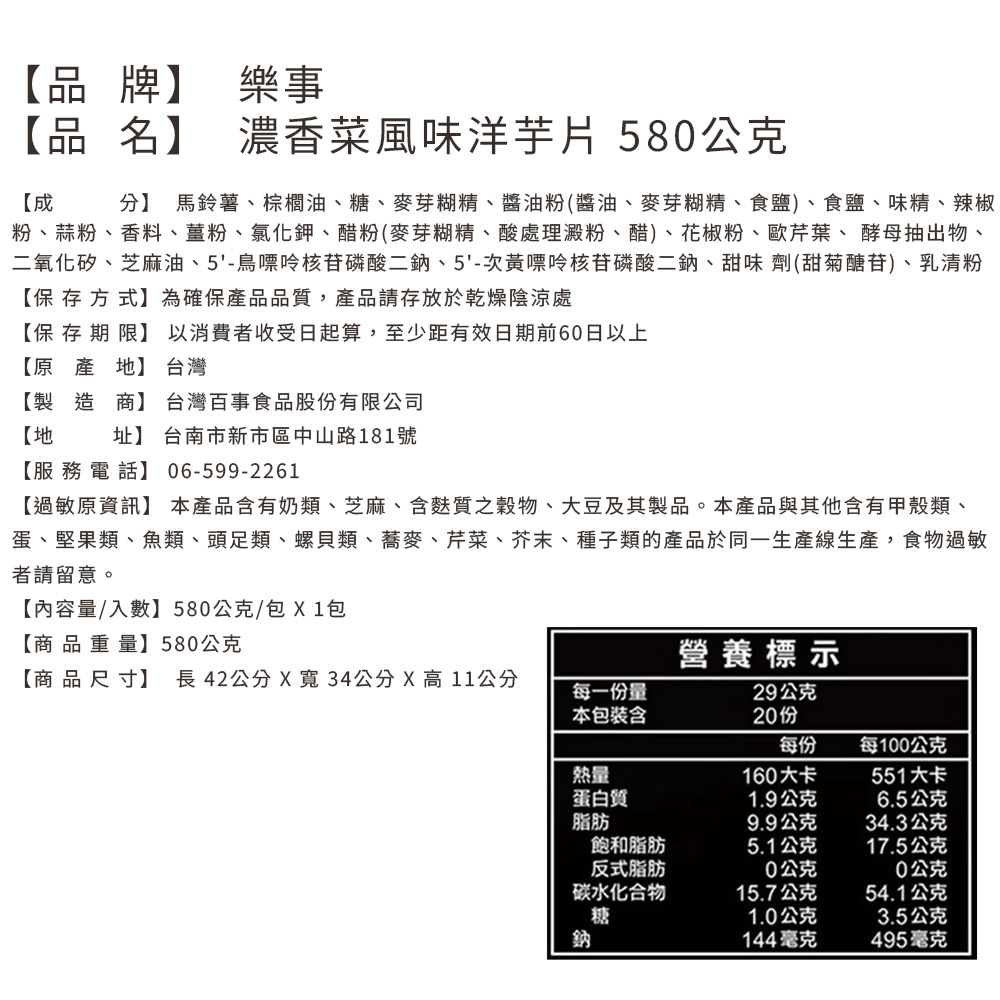 濃郁香菜風味洋芋片