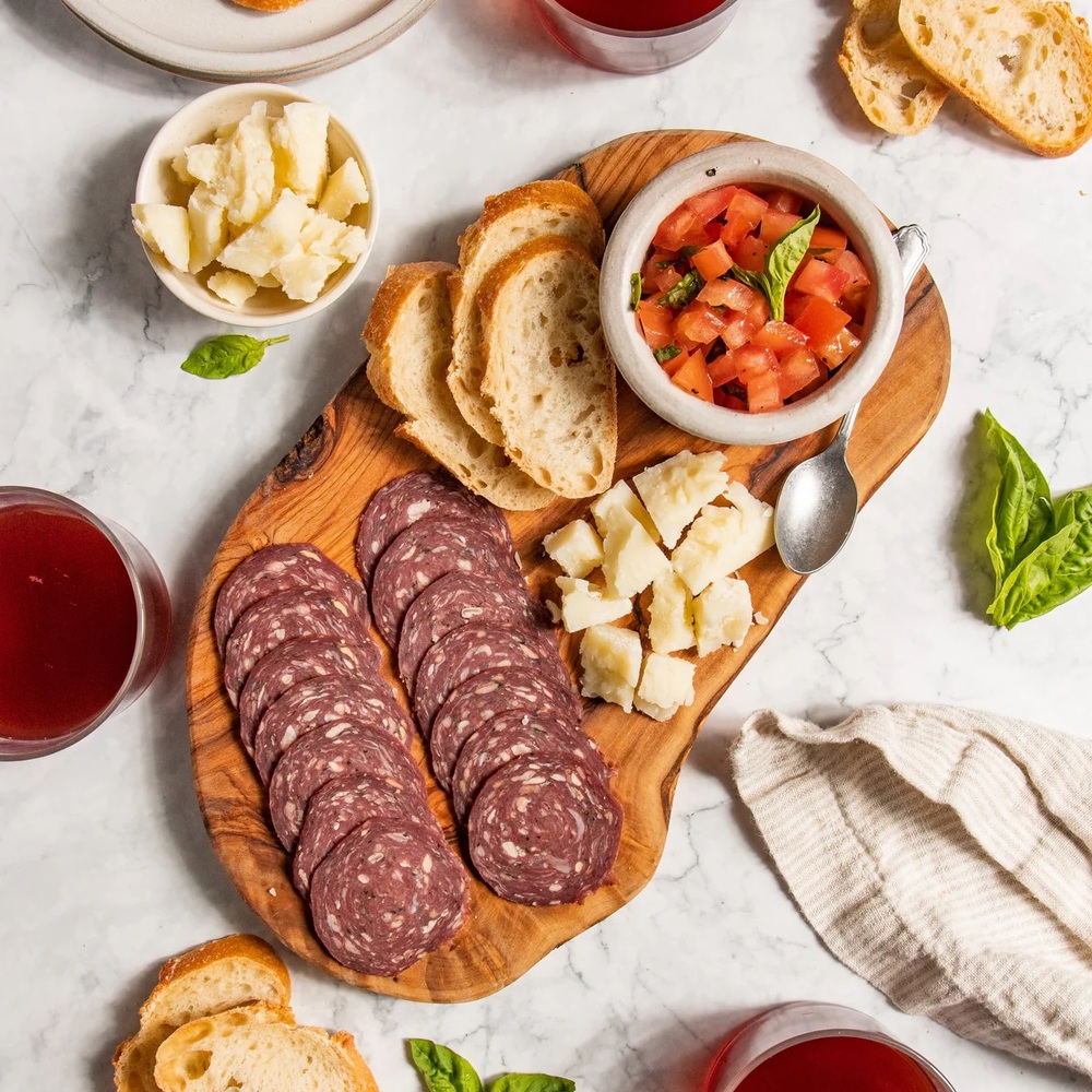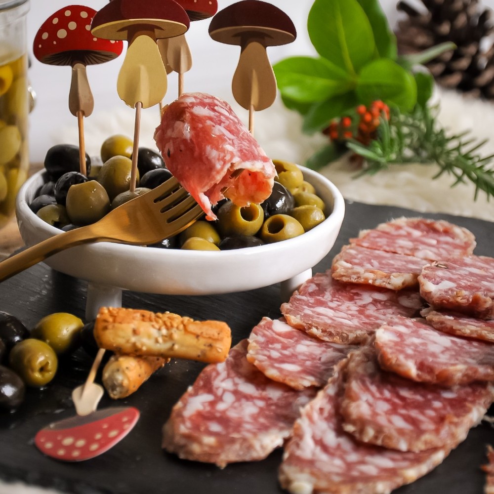 薩拉米本質上是一種風味獨特的發酵型風乾肉腸,不經過任何烹飪加工,只由發酵和風乾製成,如果你是一個肉食主義者,那麼薩拉米絕對會深深的吸引著你。義大利的薩拉米多採用不同部位的豬肉製成,且按照一定肥瘦比例配比,在製作的時候往往會加入鹽醃製,以及大蒜、胡椒、辣椒、咖喱、茴香以及各種香草進行調味,有的時候還會加入葡萄酒。