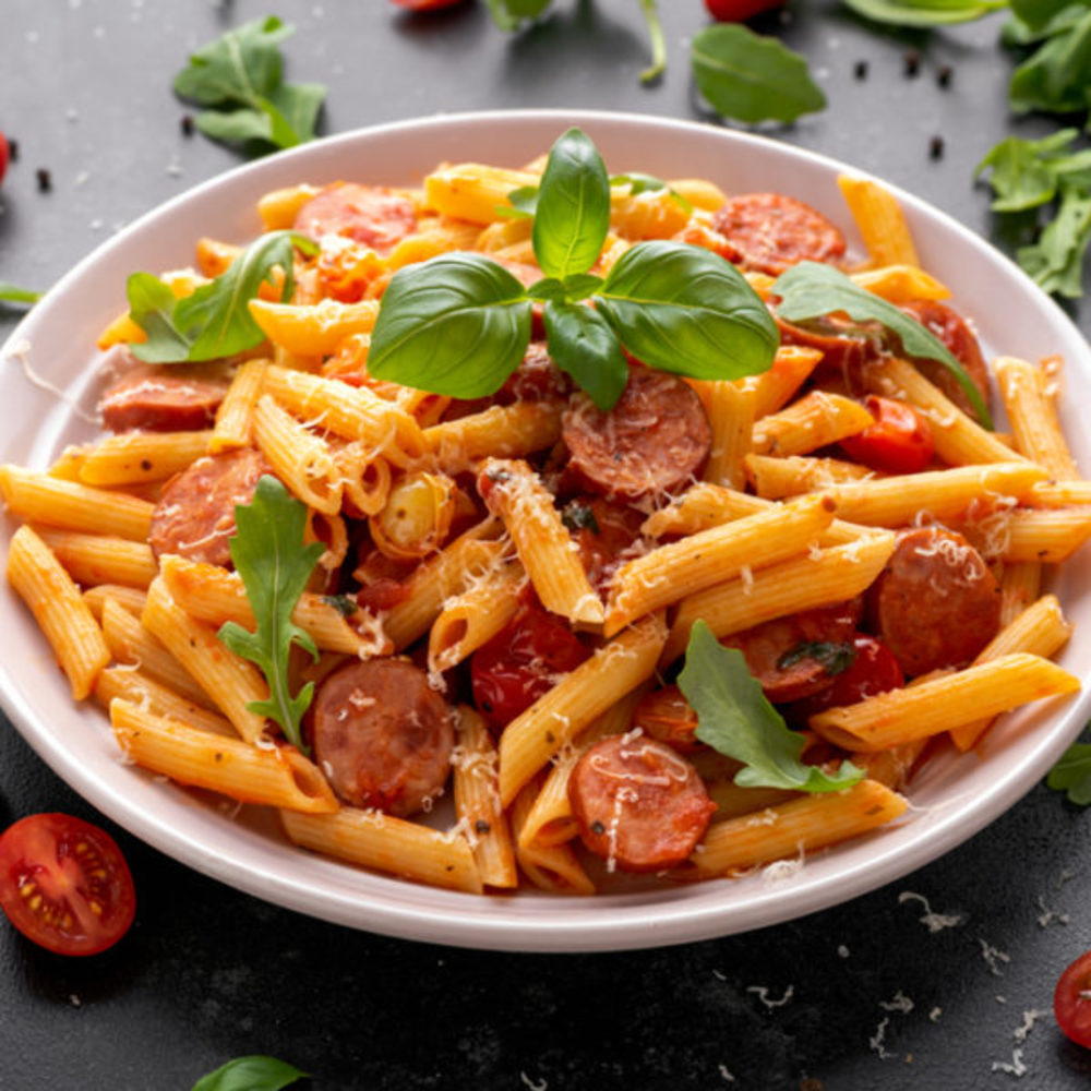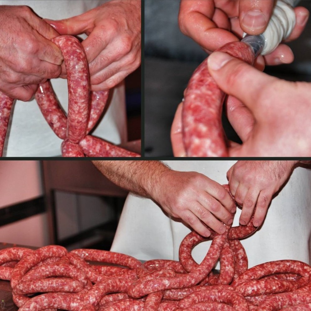 手做義式手工香腸,選用台灣黑毛豬豬後腿肉,肥瘦比例均勻並加入義大利香料跟秘方醃製多汁可口,跟市面上有添加防腐劑跟化學香料的香腸不同,可以安心食用。