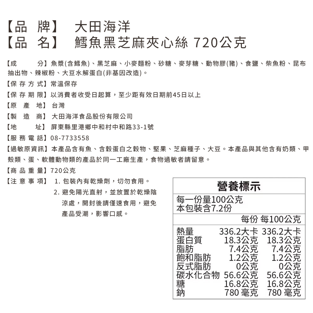 【美式賣場】大田海洋 鱈魚黑芝麻夾心絲(720公克/包