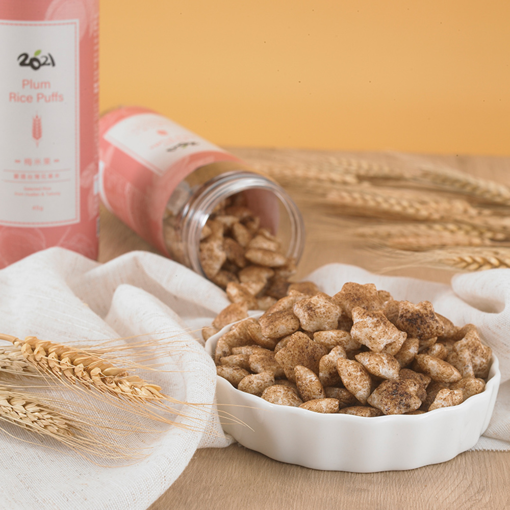 嚴選花東有機糙米與白米為基底,特別添加「青梅果釀」,入口酸香不甜膩,造形小巧好入口,大人小孩皆能安心食用。