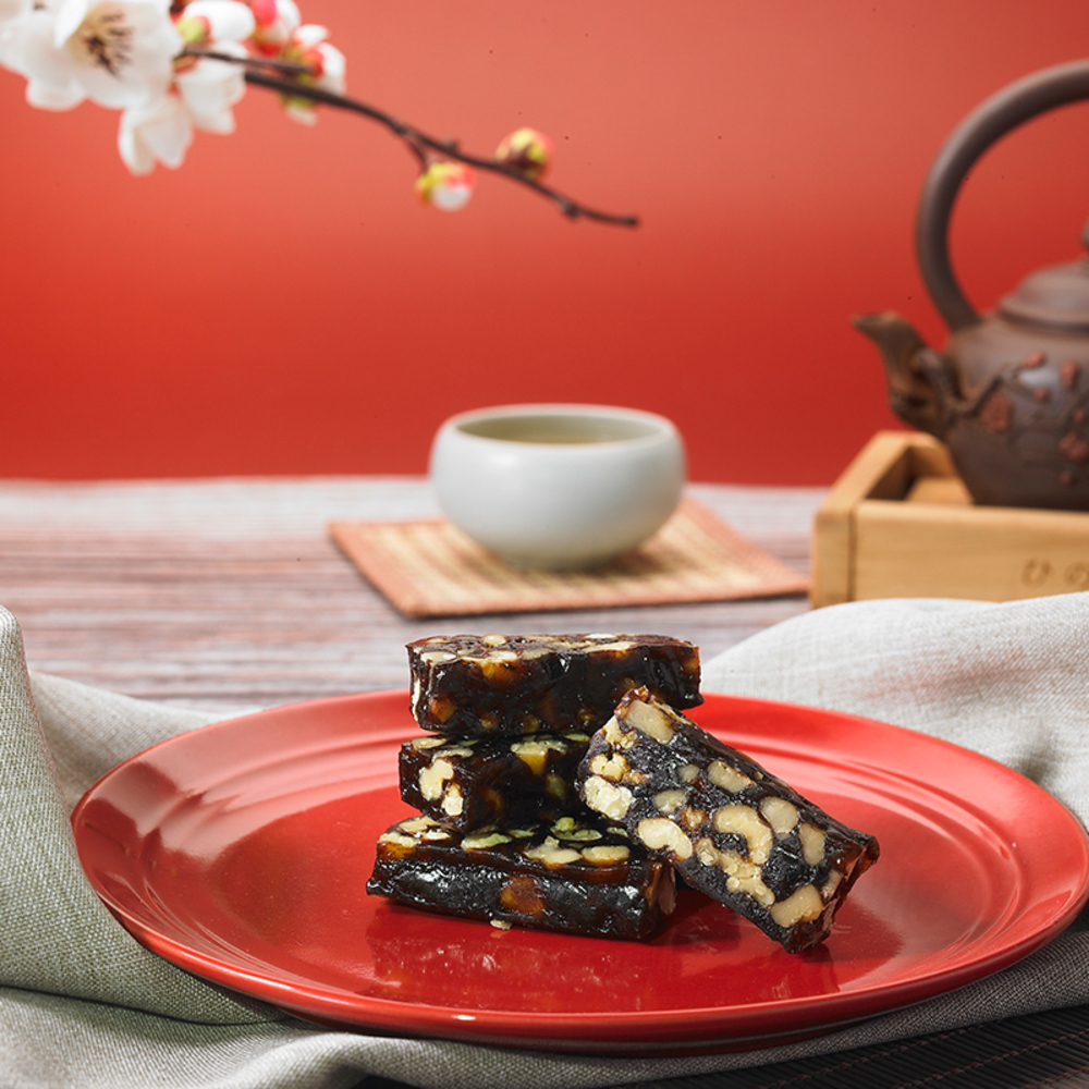 將老梅肉融入傳統核桃糕中,甜中帶酸,香氣自然,低甜度風味,孕育出「酸甘甜」的口感,春節最應景,好吃不膩口!