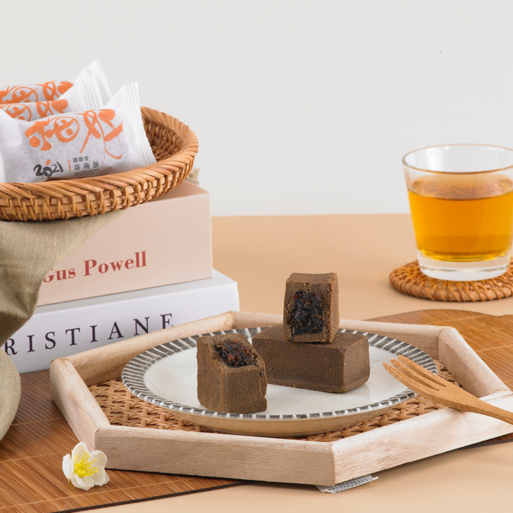 餅皮融入台灣鐵觀音茶粉,淡雅茶香搭配特有「酸甘甜」梅鳳餡,交織出多層次驚奇好滋味。