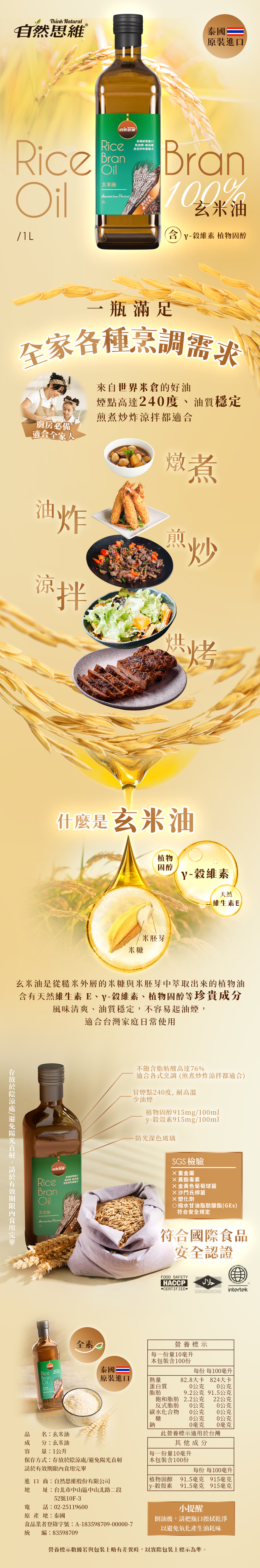 嚴選泰國頂級米糠萃取,自然思維玄米油(1000ml雙入組),清爽不油膩,無油耗味。高發煙點240度特性,特別適合台灣家庭大火快炒、氣炸鍋料理與烘焙使用。富含豐富穀維素,純素可食。現在購買享優惠,讓您的料理美味又健康!