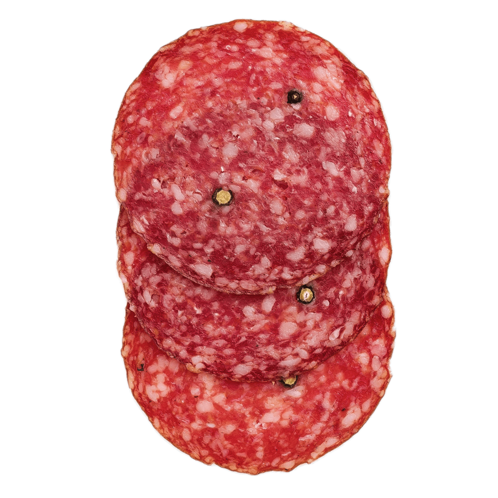薩拉米本質上是一種風味獨特的發酵型風乾肉腸,不經過任何烹飪加工,只由發酵和風乾製成,如果你是一個肉食主義者,那麼薩拉米絕對會深深的吸引著你。義大利的薩拉米多採用不同部位的豬肉製成,且按照一定肥瘦比例配比,在製作的時候往往會加入鹽醃製,以及大蒜、胡椒、辣椒、咖喱、茴香以及各種香草進行調味,有的時候還會加入葡萄酒。