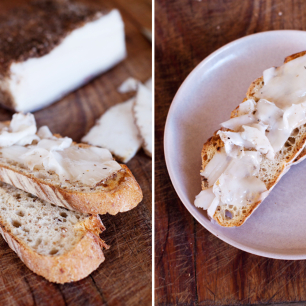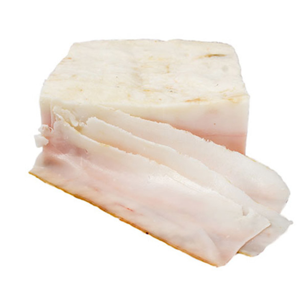 豬背脂肉,雖然與鹹肉和肥臘肉片有著一些相似之處,但卻截然不同,這種是經過醃製過的。在義大利豬背脂肉就是能量的來源,為了更好的保存豬肥肉,當地人就會採用海鹽、黑胡椒粉、新鮮的迷迭香、以及切碎的大蒜等去進行醃製,在醃製過程中,鹽從脂肪中吸收水分,並產生一種鹽水,保護脂肪免受空氣和腐敗,它可以切片放入三明治,也可以切的很薄用作開胃菜的一部分。