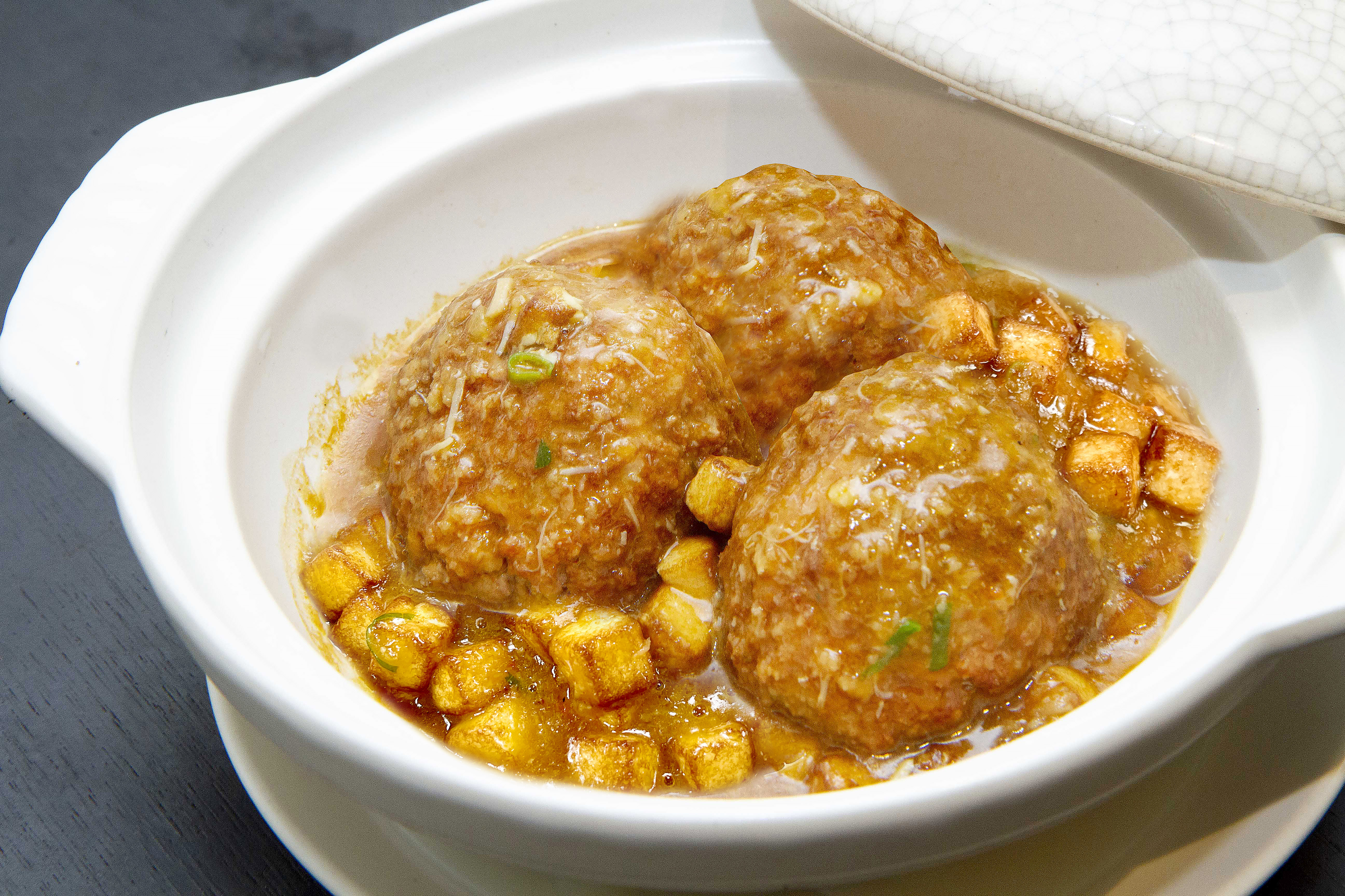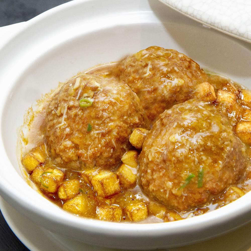 口感鬆軟的蟹粉獅子頭是江蘇揚州地區傳統名菜,屬於淮揚菜系。