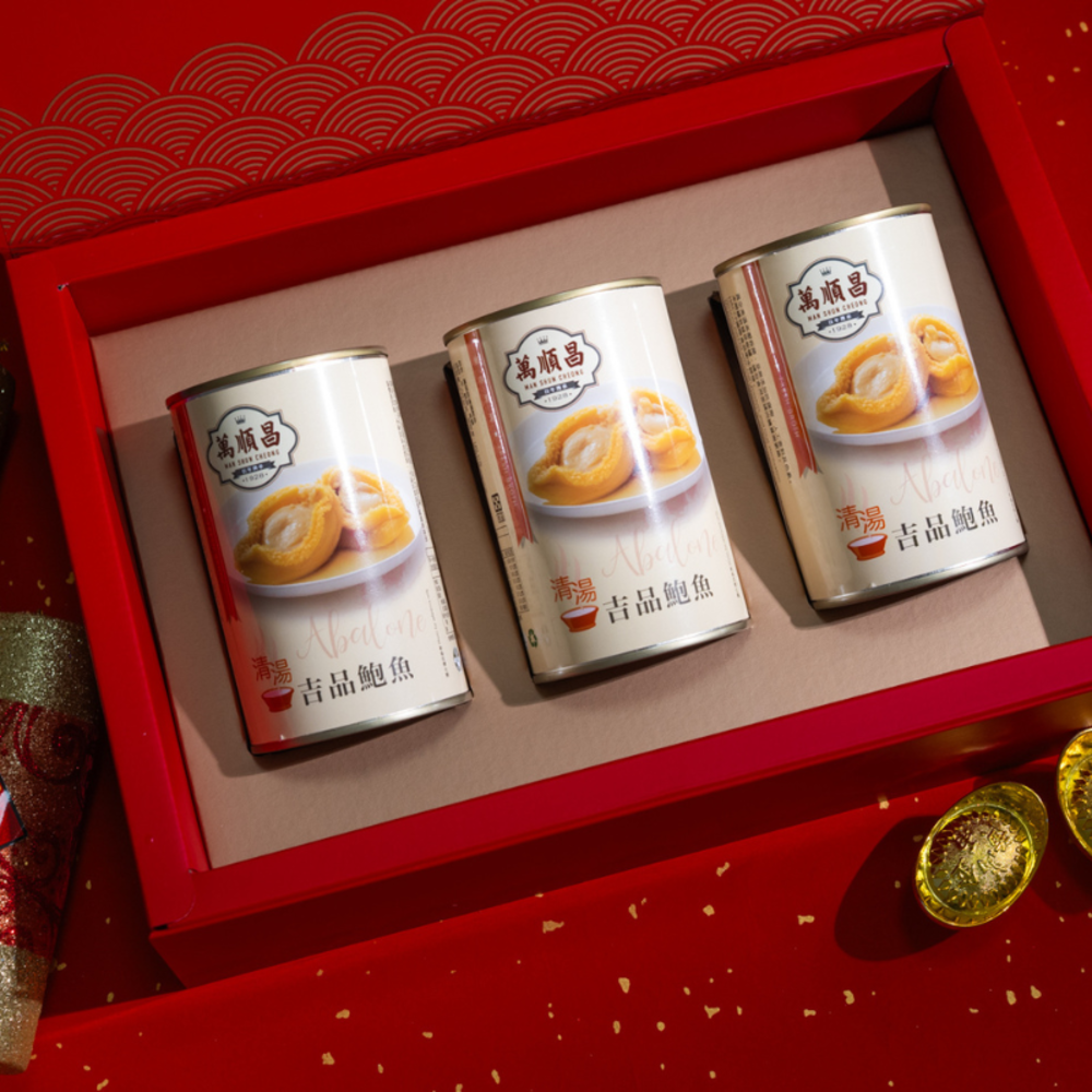 禮盒內容物:萬順昌清湯鮑魚 X 3 罐