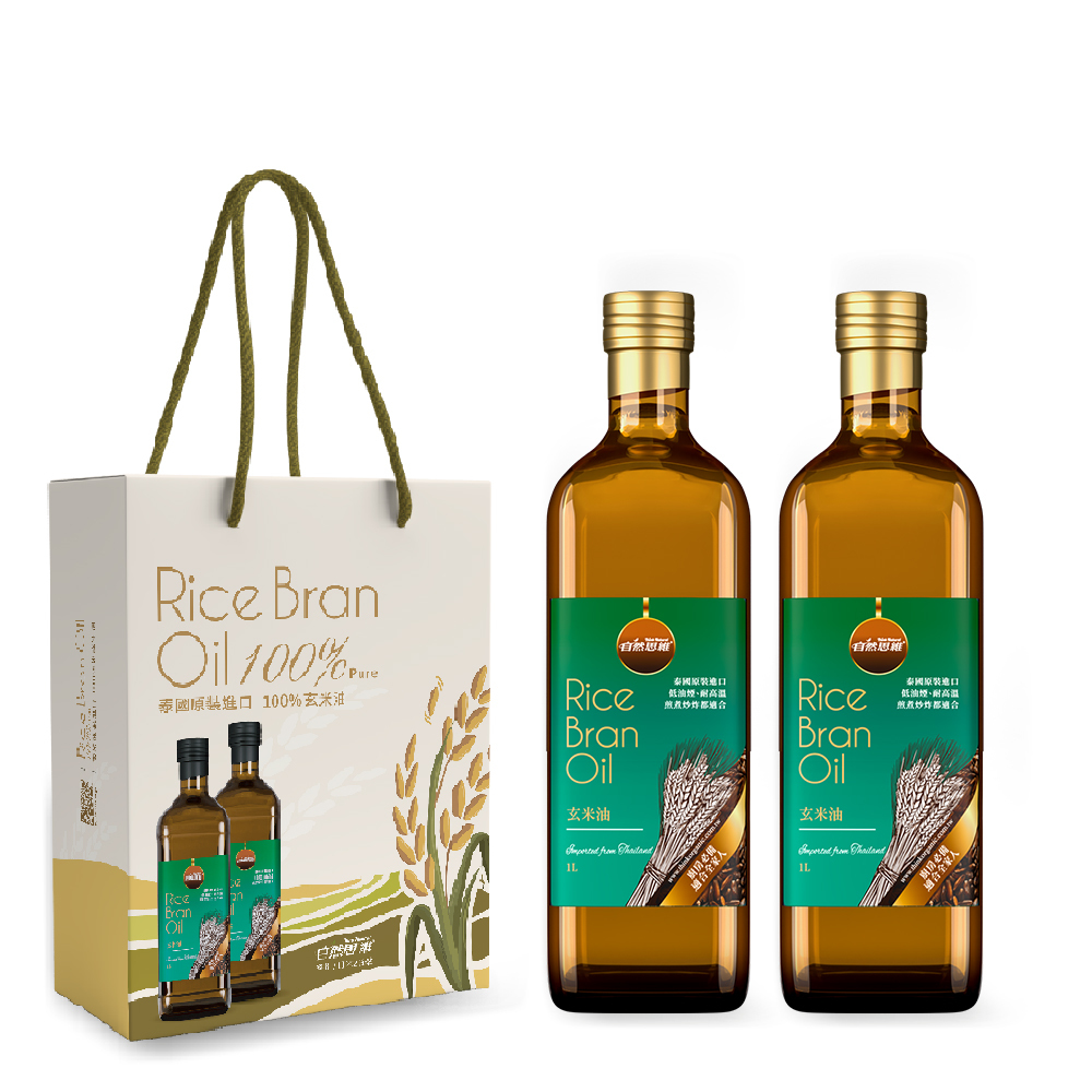 嚴選泰國頂級米糠萃取,自然思維玄米油(1000ml雙入組),清爽不油膩,無油耗味。高發煙點240度特性,特別適合台灣家庭大火快炒、氣炸鍋料理與烘焙使用。富含豐富穀維素,純素可食。現在購買禮盒享優惠,讓您的料理美味又健康!