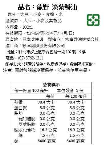 【末廣 龍野 淡紫醬油】