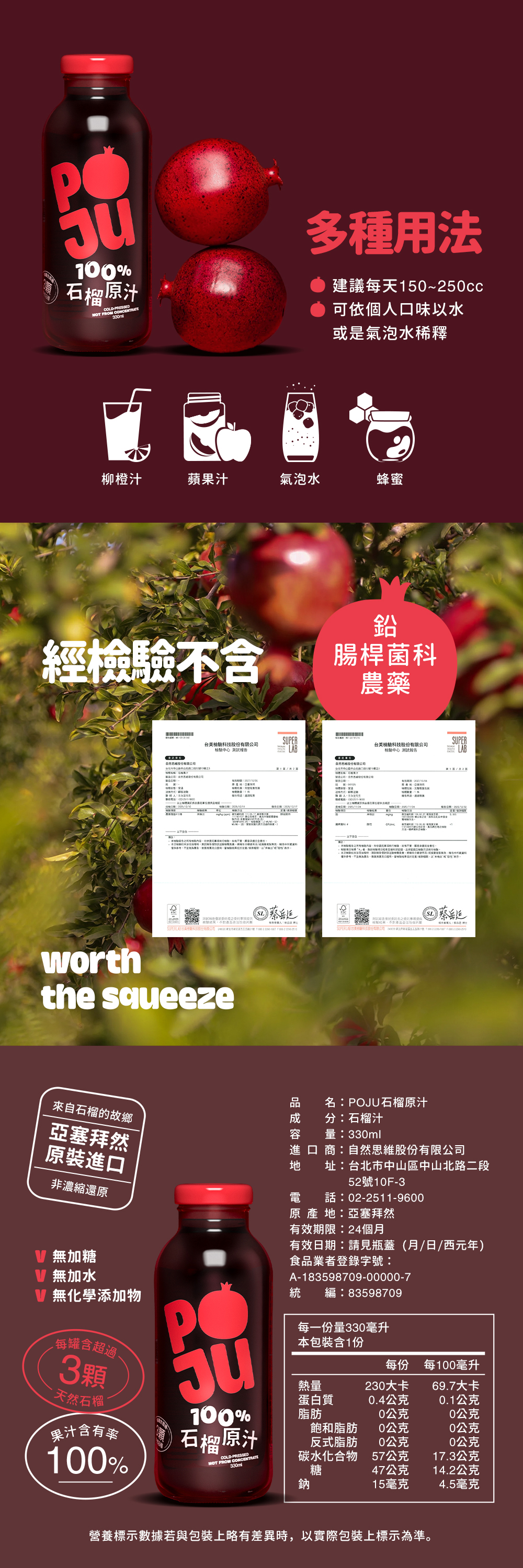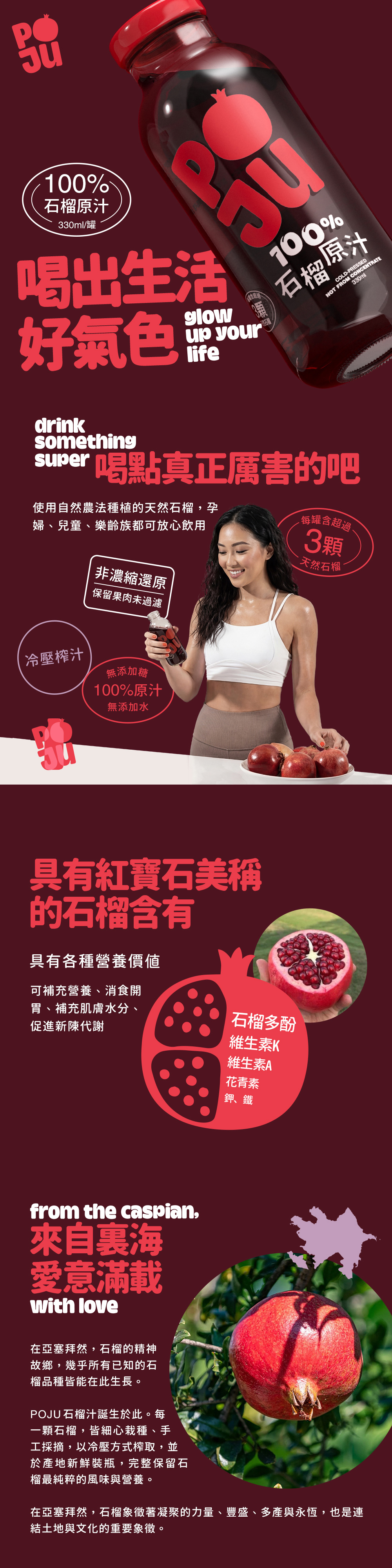 自然思維嚴選 POJU100% 紅石榴汁,裏海原裝進口,每瓶封存3顆石榴精華。堅持全果壓榨、非濃縮還原,無添加糖與防腐劑,保留豐富花青素與多酚。無論是上班族日常營養補給、孕婦養生,或是企業福委會團購、年節健康伴手禮,都是展現心意的最佳天然飲品首選。