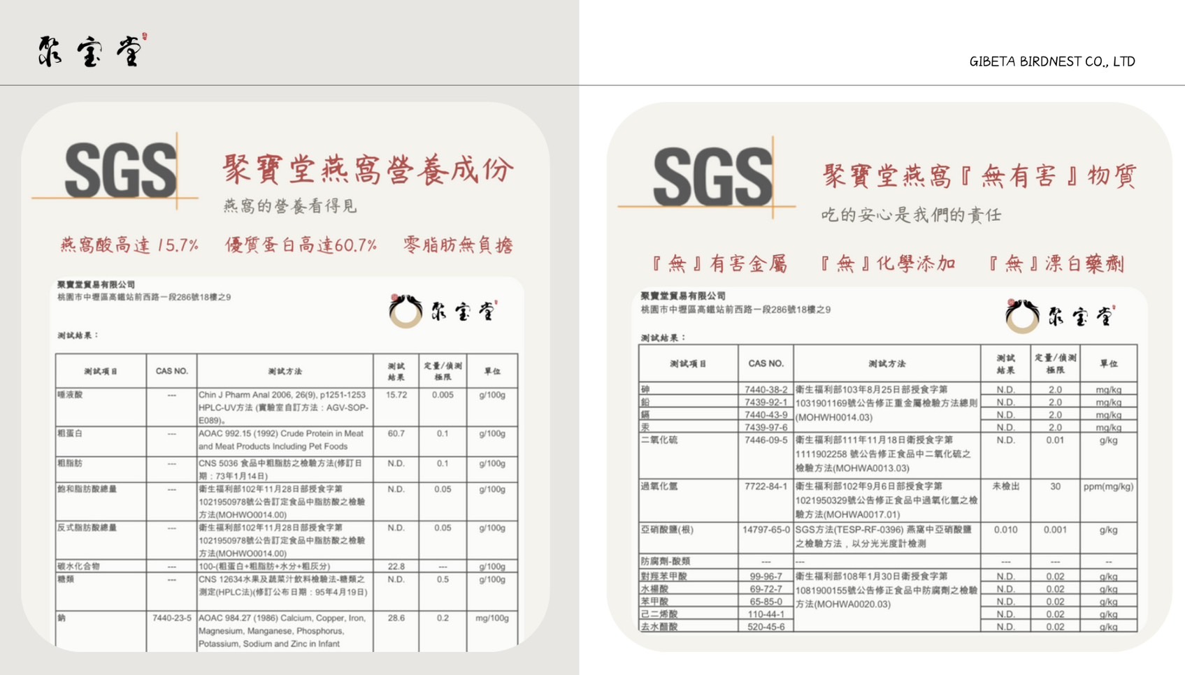 • 高純度 GIBETA 燕盞,SGS 檢驗合格。