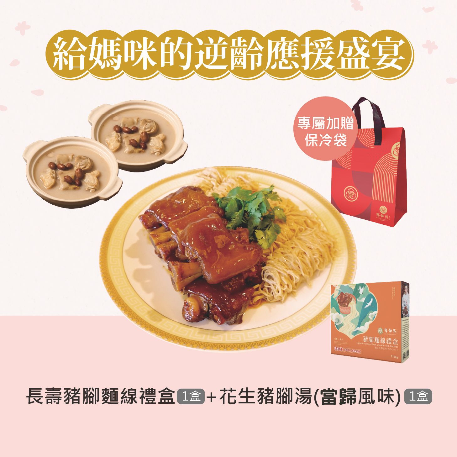 長壽豬腳麵線,象徵添壽添福;當歸風味的花生豬腳湯,溫潤暖身、香氣濃郁。