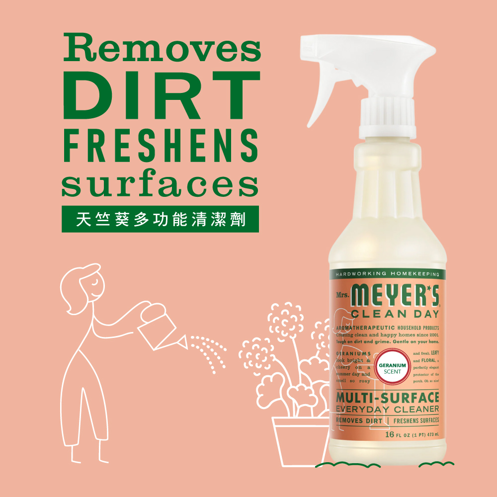 - 英文品名:Mrs. Meyer’s Multi-Surface Everyday Cleaner Geranium