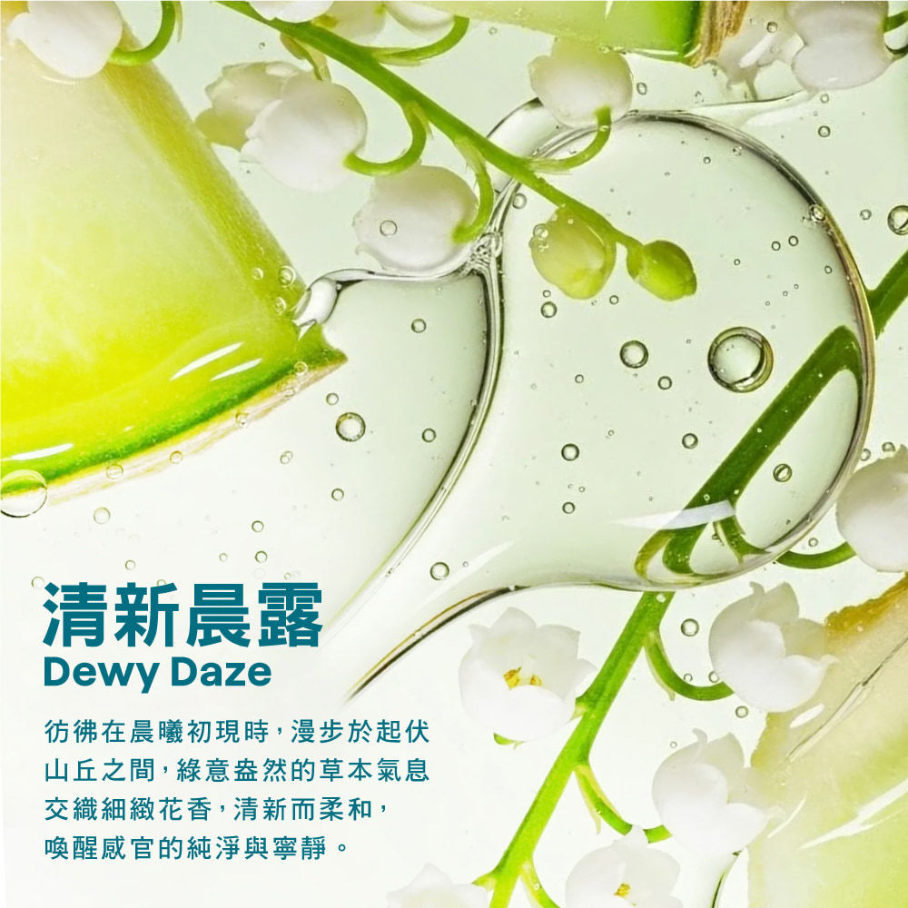 彷彿在晨曦初現時,漫步於起伏山丘之間,綠意盎然的草本氣息交織細緻花香,清新而柔和,喚醒感官的純淨與寧靜。