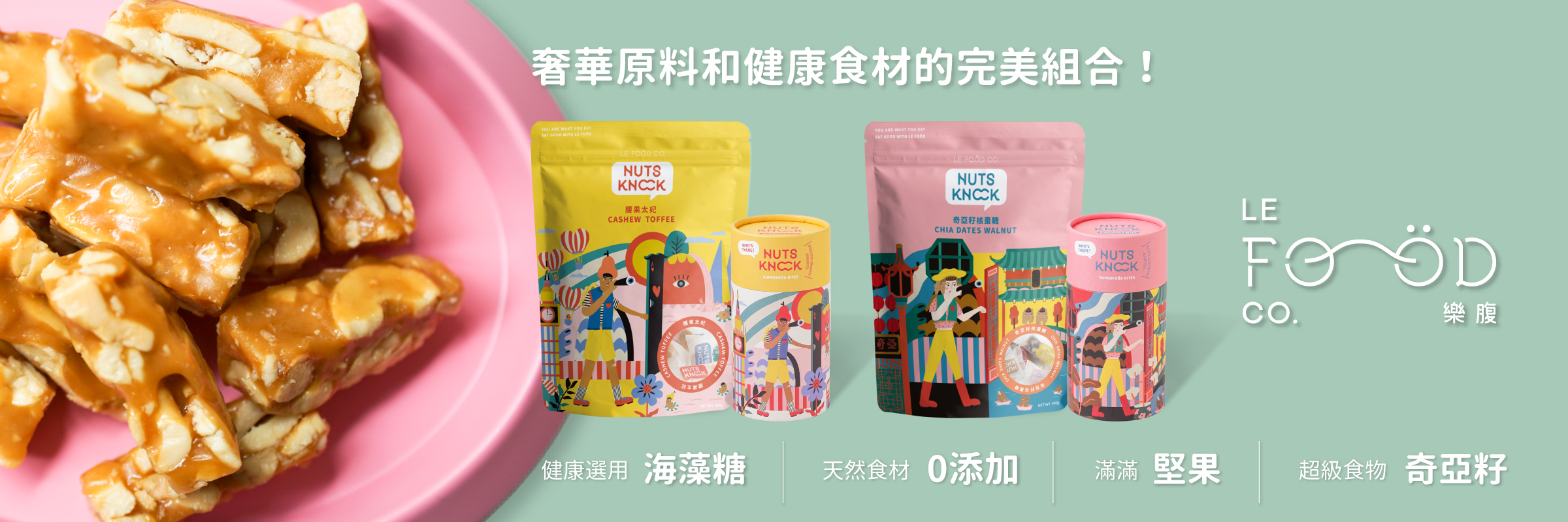 Le Foöd Co. 樂腹|Nuts Knock 堅果敲敲|腰果太妃 + 奇亞籽核棗糖|二入禮盒組 NT$ 668